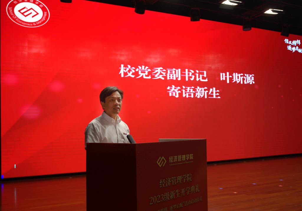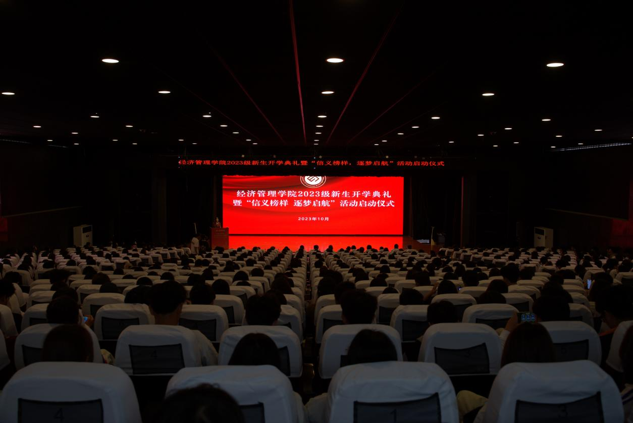 10月16日下午,SJB世俱杯官方网站2023级新生开学典礼暨“信义榜样、逐梦启航”启动仪式在丹溪文化厅举行。校党委副书记叶斯源、中国建设银行义乌分行副行长徐杨义、学院领导班子成员、专业负责人、新生班主任、教师代表以及学院2023级全体新生参加。