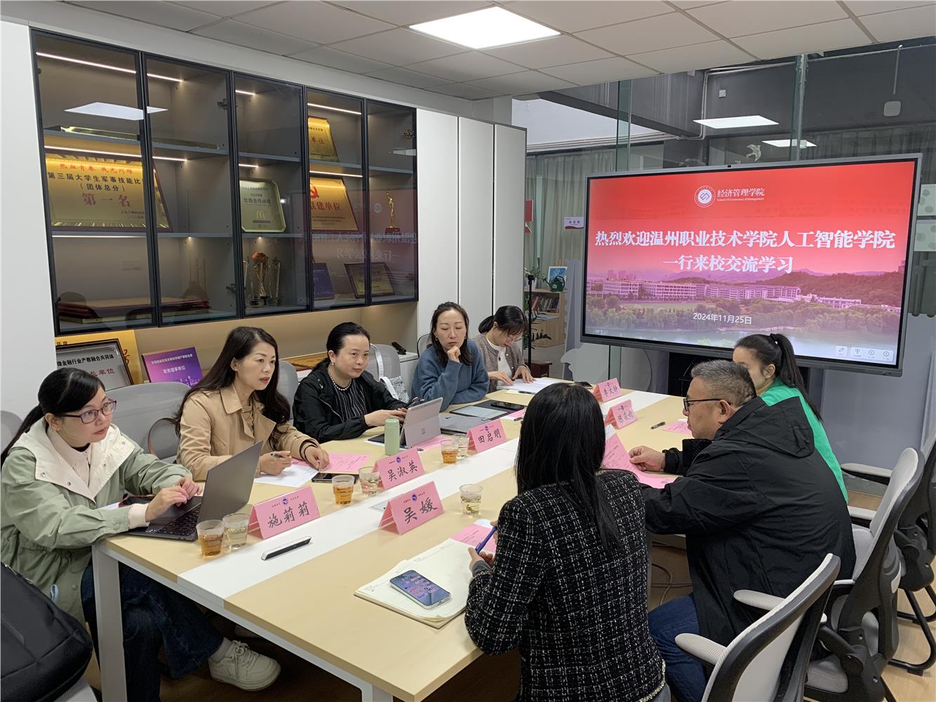 座谈会上,SJB世俱杯官方网站负责人代表学院对温州职业技术学院的到来表示热烈欢迎,并详细介绍了学院在专业建设、师资队伍建设、产教融合和校企合作等方面的做法和成效。随后,双方就二级管理经验方面展开了深入交流和探讨,共同探索更高效、科学的管理模式,以期在提升教育质量、激发内部活力上实现新的突破。希望下一步加强交流,深入合作,共谋发展。
