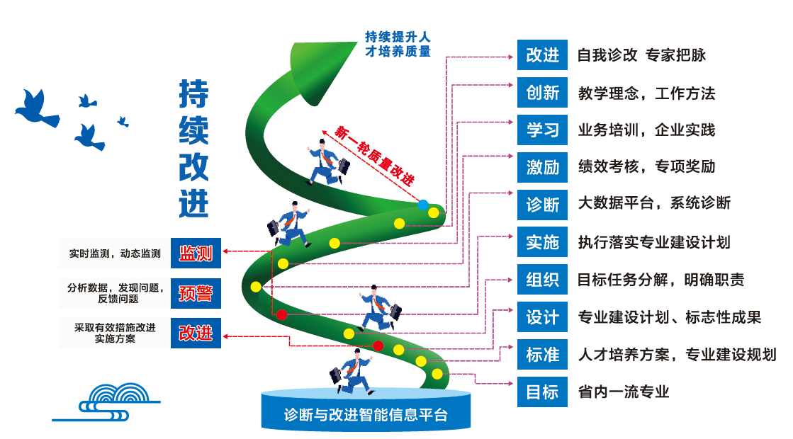 后续,学院将在专业诊改的基础上,构建市场营销专业群“四级目标、双链启动、引擎驱动、八字螺旋”质量保证体系,推动产业链与专业群相适应,提升人才培养质量,人才供给逐步匹配产业发展需求。