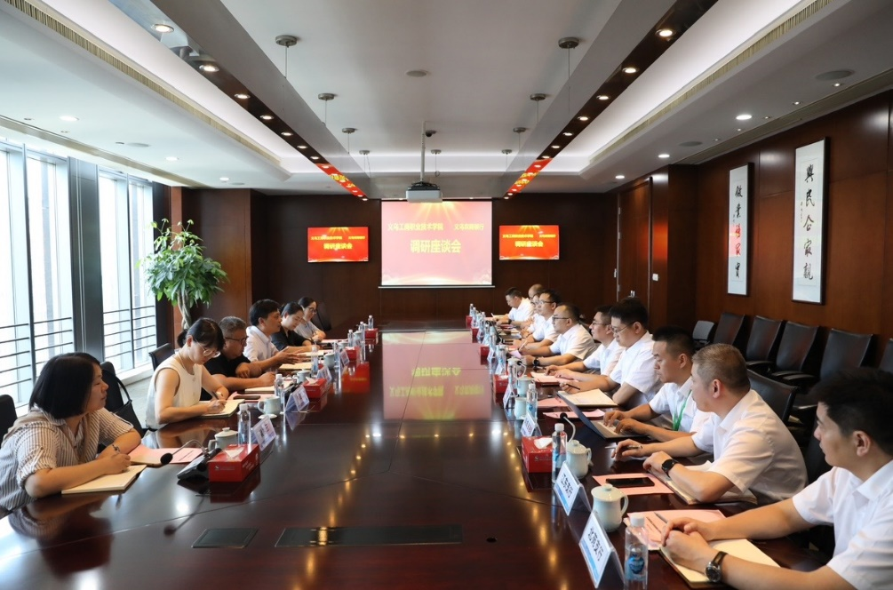 8月1日,学校党委副书记叶斯源带领SJB世俱杯官方网站负责人及相关专业教师代表走访调研了校企合作单位——义乌农商银行,重点就深化校企合作,加强双方在党建、员工培训、产业课题研究等领域开展了深入交流。义乌农商银行行长沈旭勇及相关部门负责人出席座谈交流。