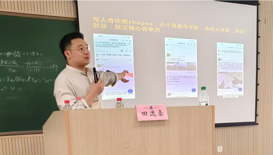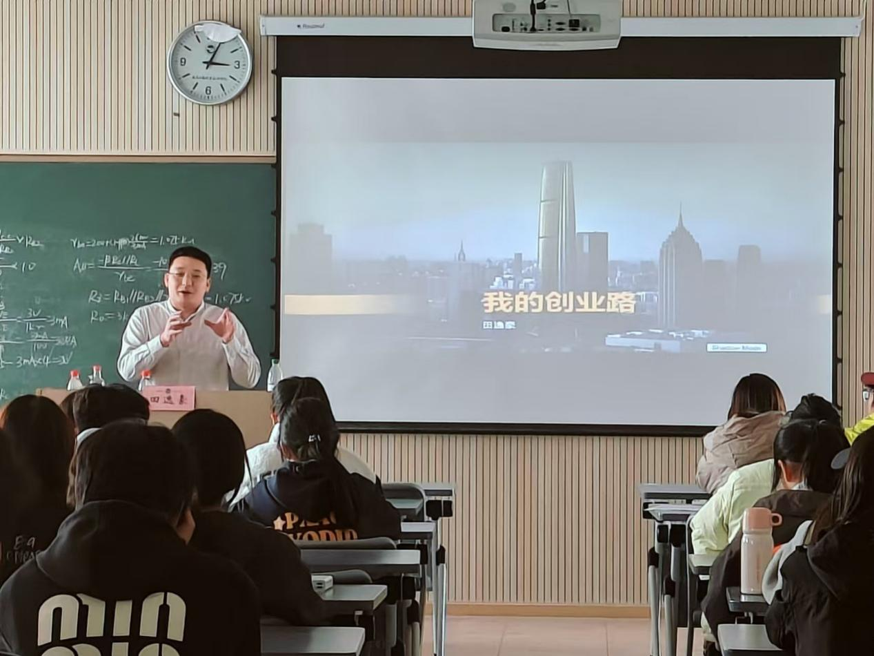 现场气氛活跃热烈,同学们积极提问,田逸豪耐心解答、倾囊相授。他鼓励同学们要敢于尝试、勇于探索未知,因为“创业路上没有一帆风顺,但正是这些挑战塑造了更加坚韧的自己