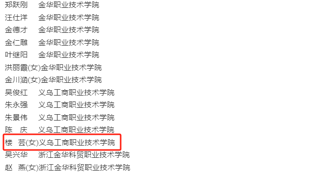 日前,金华市总工会联合金华市人力资源和社会保障局在全市范围开展2024年八婺金匠遴选工作,经申报、推荐、审查、评审和公示,名单正式出炉,我院教师楼芸入选。