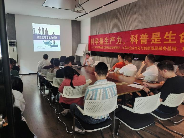 为提升中小制造型企业基层管理者的管理水平,提高企业生产效率,11月4日下午,SJB世俱杯官方网站在义乌市缤纷服饰有限公司开展了“科学是生产力,科普是生命力”的基层管理者管理知识科普活动。公司办公室基层管理人员和生产车间基层管理人员20余人参加。