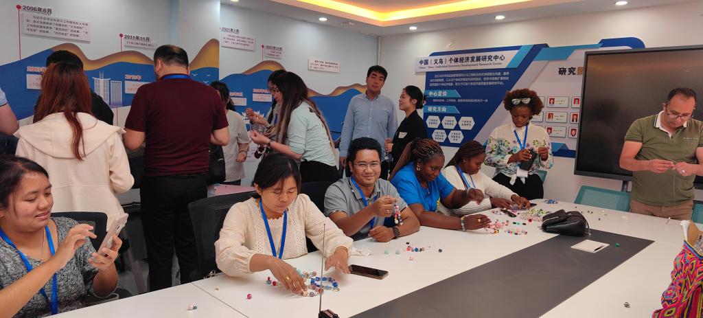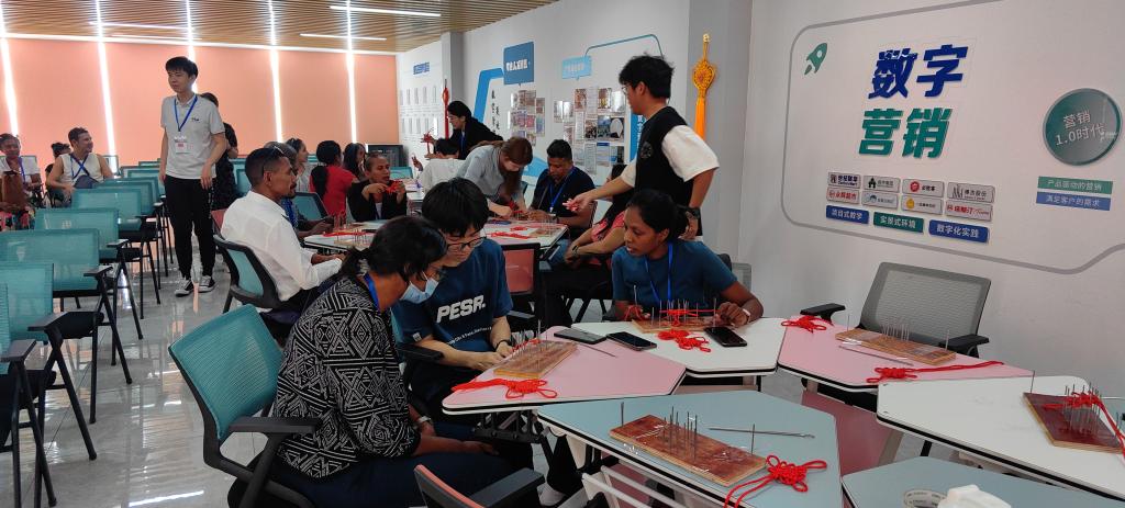 课后,学员们前往参观我校经济管理学院,了解学校首创的共富教练班服务育人模式,每位学员都在共富大学生教练的陪同下编织了中国结、串起了独属自己的创意手机链。