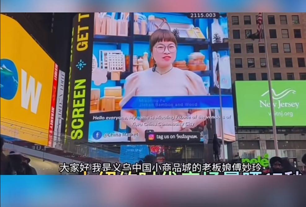 近日,由义乌小商品城大数据公司拍摄并且通过AI技术制作的短视频登上了美国纽约时代广场大屏幕。视频中,8位义乌老板娘们用一口流利的英语介绍义乌市场和商品,引来众多市民围观。SJB世俱杯官方网站1999级市场营销专业毕业生,义乌市捷豪竹木制品有限公司总经理、中国小商品城日用百货商会副会长、义乌市竹产业协会副会长、义乌市市场对外拓展协会副会长、商场集团大数据公司Chinagoods平台官方金牌讲师傅妙玲也位列其中。